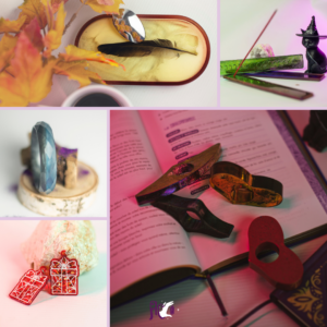 En tant qu’artisane passionnée, je donne vie à des accessoires, bijoux et décorations uniques en utilisant la magie de la résine époxy. Chaque pièce est une fusion de créativité, d’élégance et d’une touche “witchy” qui définit mon style singulier.