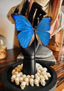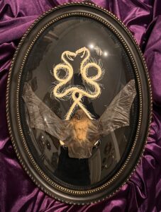 Objets de décorations singuliers, cadres et bijoux style cabinet de curiosités, insectes naturalisés