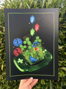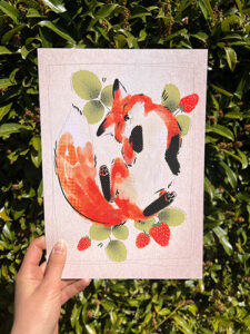 Illustrations imprimées, dessins à la dorure ou aquarelles originales inspirés de la nature, de la Pop culture et du japon traditionnel.