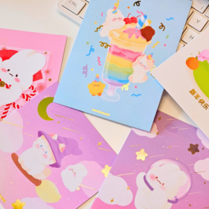 Momonaade, c’est l’univers où Momo et ses amis prennent vie : un lapin gourmand aux joues roses, inspiré de la culture kawaii japonaise. Illustratrice spécialisée dans la papeterie, j’essaie de faire de mon art une véritable représentation du style de vie kawaii, qui répand la joie et la positivité partout où il va!