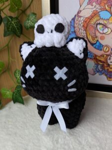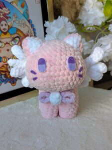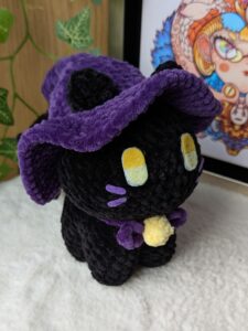 Peluches réalisées au crochet en fil chenille tout doux certifié Oeko-tex. Travail 100% fait main. Créations uniques et originales inspirées des univers geek et kawaii. Réalisation du petits chats magiciens avec de jolis chapeaux, de dragons de toute taille, de petits animaux mignons sous forme de porte-clé…
