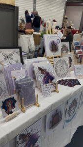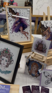 Je suis illustratrice et auto-éditrice du livre de coloriage d’art-thérapie À la lueur des fées. Mon travail s’inscrit dans un univers fantastique, imaginaire et onirique. J’ai développé une gamme de papeterie comprenant des blocs-notes, carnets de notes et carnets à croquis, ainsi que des prints, des cartes postales et mon livre de coloriage. J’aime également réaliser des illustrations en direct lors des salons, une démarche qui apporte authenticité et proximité à mon stand.